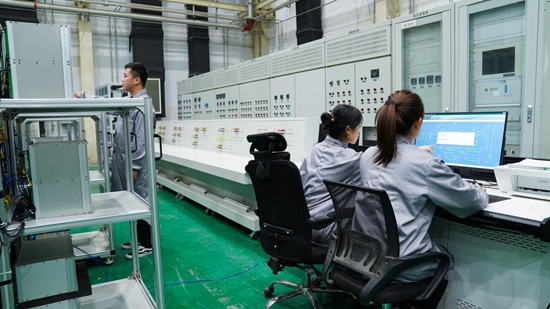 國網(wǎng)河北電科院利用搭建的“雙花瓣”配電網(wǎng)物理平臺,對雄安新區(qū)配電網(wǎng)運(yùn)行狀況進(jìn)行模擬仿真。 段昕供圖