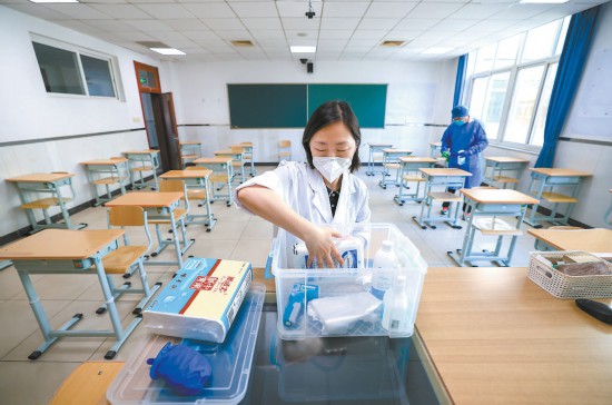 昨天,記者探訪東直門中學考點,7所中學的390名考生將在這里參加高考。目前,13個普通考場、3個備用考場已布設(shè)完畢。市委教育工委副書記、市教委新聞發(fā)言人李奕說,今年高考考場設(shè)置堅持安全第一,防疫措施進一步細致完善,更加突出溫馨服務,保證考生從容應考。