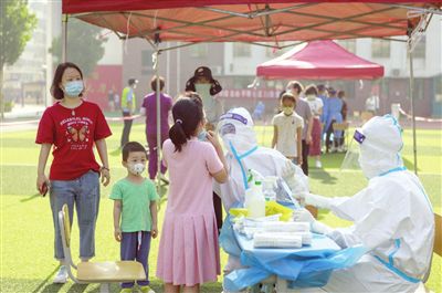 6月5日,天津市有序開展全員核酸檢測。圖為南開區(qū)中心小學核酸檢測采樣點現(xiàn)場。 記者 胡凌云 通訊員 王英浩 攝