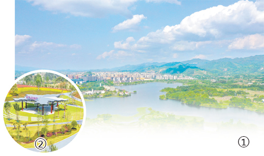 圖①:重慶市梁平區(qū)雙桂湖國(guó)家濕地公園的美景。
