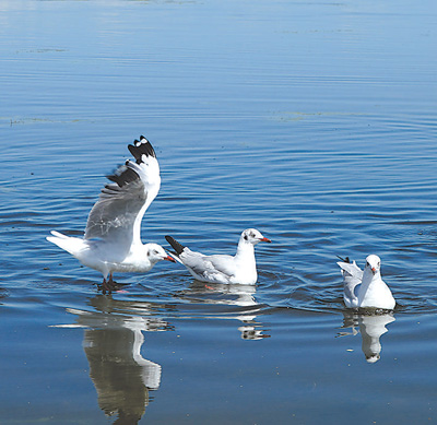 水鳥(niǎo)在青海湖棲息覓食。