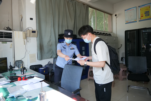 6月7日一早,在連云港灌南第二中學考點前,兩名考生向執(zhí)勤民警求助稱身份證遺忘在家中,駐守在考點的灌南縣公安局新安派出所戶籍工作人員核實身份后,現(xiàn)場為考生出具臨時身份證明,同樣用時不到5分鐘,保障考生順利開考。