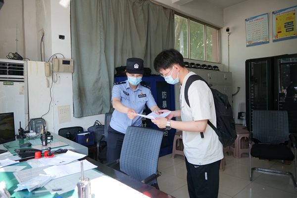 人民網(wǎng)南京6月7日電(馬燾燾)“大門口這里,有個(gè)考生身份證沒帶!”6月7日8時(shí)20分許,2022年高考開考前,江蘇鹽城市公安局鹽都分局執(zhí)勤民警在當(dāng)?shù)氐谝恢袑W(xué)考點(diǎn)巡邏時(shí)發(fā)現(xiàn)這一情況,隨即通過對講機(jī)進(jìn)行匯報(bào)。