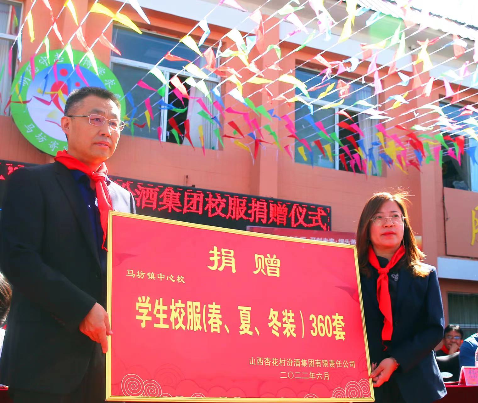 6月1日,呂梁市方山縣馬坊鎮(zhèn)中心校舉行慶“六一”活動暨汾酒集團(tuán)校服捐贈儀式。當(dāng)天,汾酒集團(tuán)為該校捐贈了價值11.6萬元的夏、秋、冬校服360套和360本新華字典。