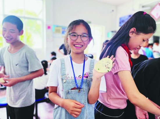 為什么會讓學生學做燒餅呢?校長王國寶這樣解釋:“縉云燒餅的制作技藝是國家級非物質文化遺產,讓學生傳承這項技藝,也能讓他們感受縉云人記憶深處的味道。六年級的同學即將畢業(yè),以后他們會離開縉云展翅高飛,真心希望他們能記住縉云燒餅這個回家的路標?!?/p>