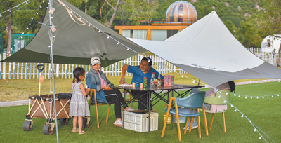 “三五好友結(jié)伴而行,喝茶賞景,好不愜意。”程曉說,“現(xiàn)在市場上有很多比較成熟的露營產(chǎn)品可選擇,有的只提供帳篷等設(shè)備,需要自備餐食,有的是全包,吃住游所需都準備好了,還有些個性化的產(chǎn)品會提供桌游、羽毛球等休閑項目?!痹隗w驗過幾次露營后,程曉正打算帶上父母一起戶外郊游。