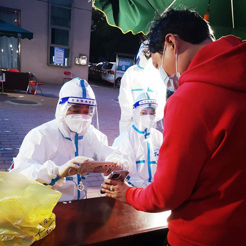5月4日7時(shí),北京銀行黨委書(shū)記、董事長(zhǎng)霍學(xué)文準(zhǔn)時(shí)到達(dá)廣內(nèi)街道宣武藝園核酸檢測(cè)點(diǎn),向社區(qū)工作人員報(bào)到。霍學(xué)文穿戴好藍(lán)色防護(hù)服、套上鞋套、膠皮手套和透明防護(hù)面罩,開(kāi)始維護(hù)現(xiàn)場(chǎng)秩序,提醒居民戴好口罩、準(zhǔn)備好身份證,并保持安全間距?;魧W(xué)文表示,馳援社區(qū)防疫一線是服務(wù)群眾的最好機(jī)會(huì),北京銀行選派了90名干部員工投入下沉社區(qū),還成立了志愿服務(wù)工作組與街道社區(qū)攜手打贏疫情防控阻擊戰(zhàn)。