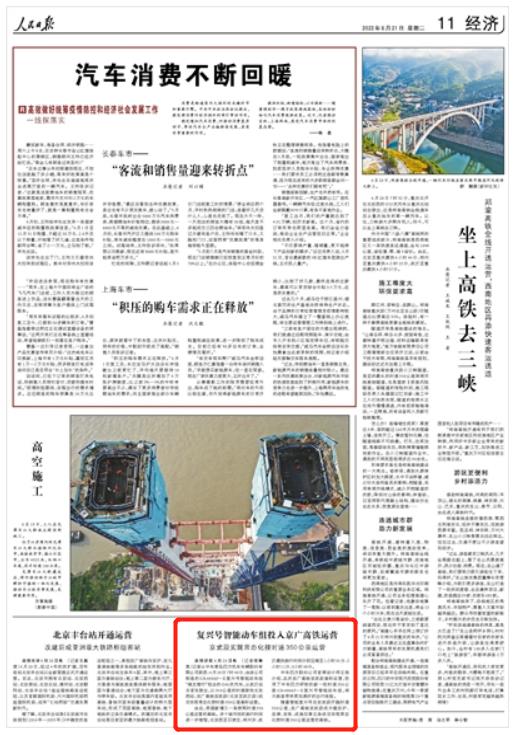復(fù)興號智能動車組投入京廣高鐵運營