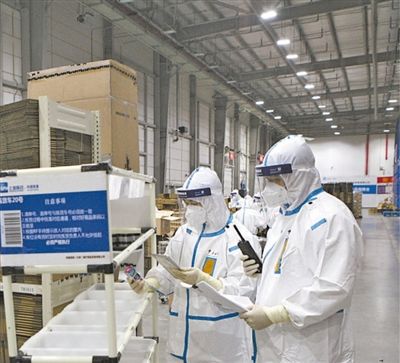 因為進口藥品的物流是冷鏈物流,按照嚴格的衛(wèi)生要求,我們換上白色防護服,戴上防護面屏、一次性手套、N95口罩,經(jīng)過掃碼、測溫,一起進入了保稅倉。