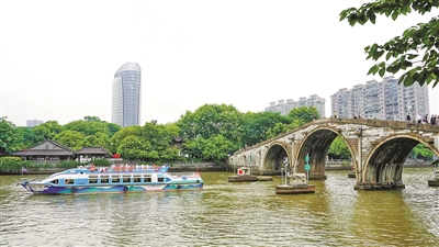 兩艘船2022年3月底進廠,改造前后經(jīng)歷兩個多月,杭州水上發(fā)展集團有限公司相關(guān)負責人說:“為了更好地發(fā)揮運河游船的文化特色優(yōu)勢,我們緊扣‘中國新時代、杭州新亞運’的目標定位,精心改造升級了兩艘水上巴士?!彼习褪窟€是亞運特許零售點,游客在船上可購買到心儀的亞運紀念品,船舶運營過程中還會途經(jīng)亞運會吉祥物“宸宸”的原型——拱宸橋,兩岸的市民游客還可與亞運特色船、拱宸橋來個合影。