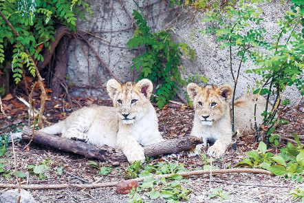 去年新生的兩只小獅子與游客見面。