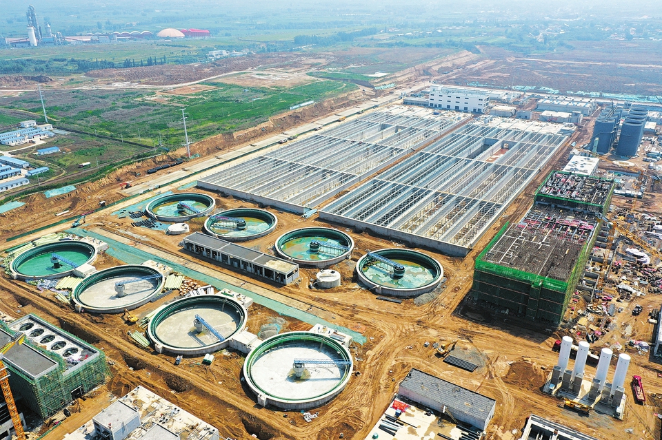 6月27日,航拍下的山西綜改示范區(qū)山西合成生物產(chǎn)業(yè)生態(tài)園污水處理及再利用項目已現(xiàn)雛形。該項目是目前全國投資規(guī)模最大、處理標準最高、分鹽量最大的工業(yè)園區(qū)污水處理項目,總規(guī)劃用地約800畝,總投資21.38億元,建成后日污水處理量最高達14.4萬噸。(記者孫榮祥攝)