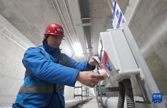 工作人員在雄安新區(qū)容東片區(qū)地下管廊調(diào)試物聯(lián)網(wǎng)設備(2022年3月30日攝)。新華社記者 朱旭東 攝
