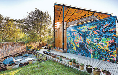 在陶藝團隊持續(xù)推動下,花樹凹逐漸變成了新舊建筑錯落、三彩藝術(shù)點綴的“洛陽三彩國際陶藝村”。沿著大缸鋪設(shè)的“陶瓷之路”拾級而上,一步一景、目不暇接,藝術(shù)景觀與自然景觀相互呼應(yīng)、完美融合。