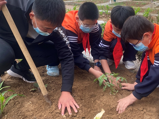 河北省威縣第五中學(xué)教育集團師生在勞動教育實踐基地移栽西紅柿植株。 趙國華攝