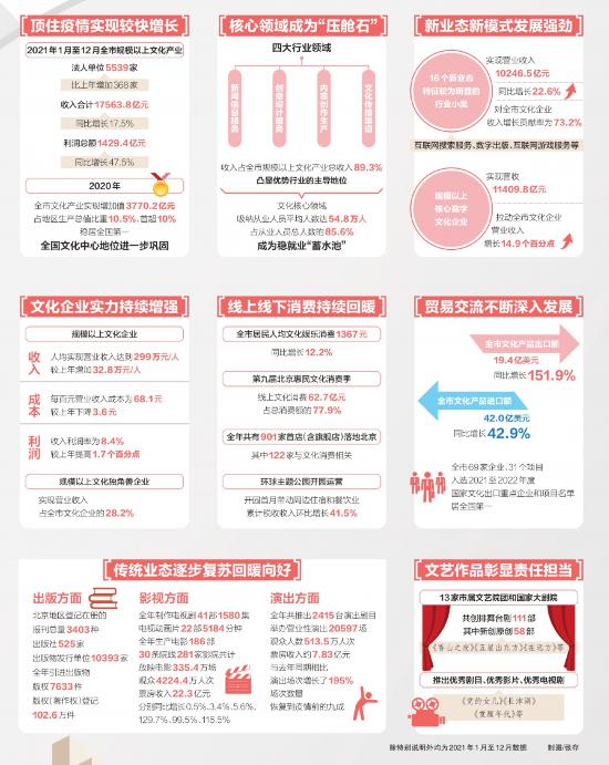 2021年是“十四五”開局之年,北京文化產(chǎn)業(yè)發(fā)展圍繞落實習近平總書記關于文化建設的重要論述,服務國家文化發(fā)展戰(zhàn)略,立足推進全國文化中心建設,以高質量發(fā)展為主線,在疫情防控常態(tài)化形勢下,積極主動應變求新、穩(wěn)中求進,實現(xiàn)了“十四五”時期的良好開局。