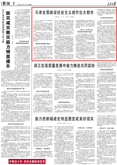 天津市委副書(shū)記、市長(zhǎng)張工介紹,十年櫛風(fēng)沐雨,十年砥礪前行,習(xí)近平總書(shū)記為天津擘畫(huà)的宏偉藍(lán)圖正在變成美好現(xiàn)實(shí)。如今的津沽大地,處處展現(xiàn)欣欣向榮、蓬勃向上的新氣象,全市人民意氣風(fēng)發(fā),向著全面建設(shè)社會(huì)主義現(xiàn)代化大都市的目標(biāo)昂首奮進(jìn)。
