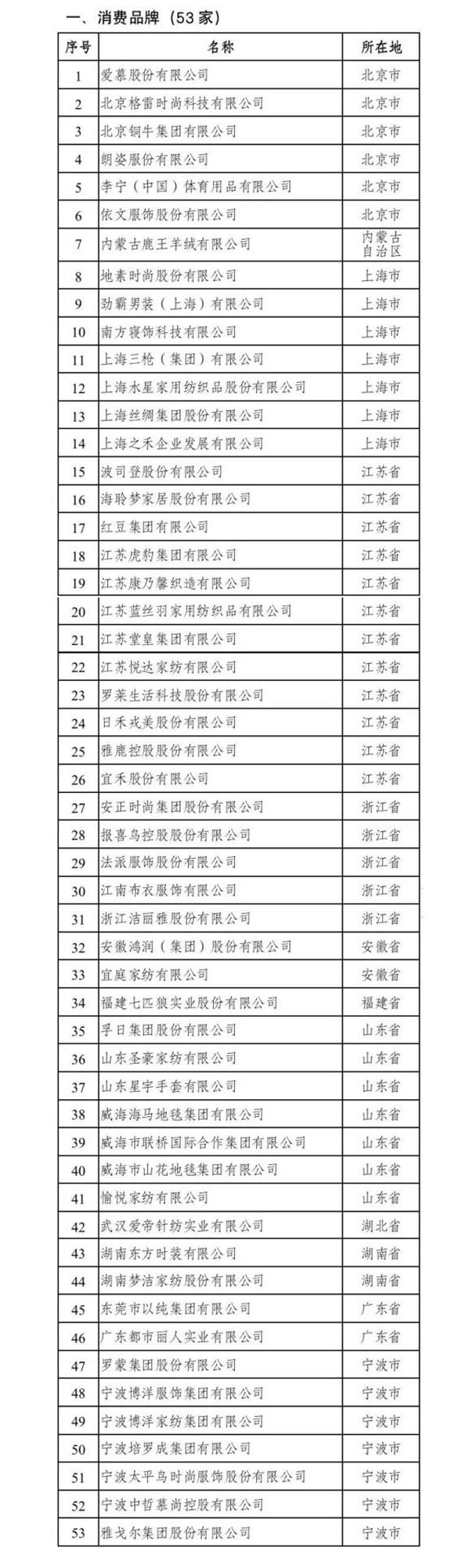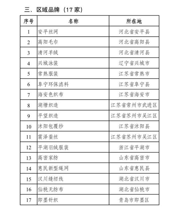 此次入選的江蘇消費(fèi)品牌包括波司登、海聆夢(mèng)家居、紅豆、虎豹、康乃馨、藍(lán)絲羽、堂皇、悅達(dá)家紡、羅萊、日禾戎美、雅鹿、宜禾等。制造品牌包括常州華利達(dá)、晨風(fēng)、黑牡丹紡織、東渡紡織、國(guó)望高科纖維、聯(lián)發(fā)紡織、聯(lián)宏紡織、陽(yáng)光、盛虹、鑫緣、宜興樂(lè)祺等。區(qū)域品牌包括常熟服裝、阜寧環(huán)保濾料、海安色織布、湖塘織造、平望織造、沭陽(yáng)包覆紗、震澤蠶絲等。