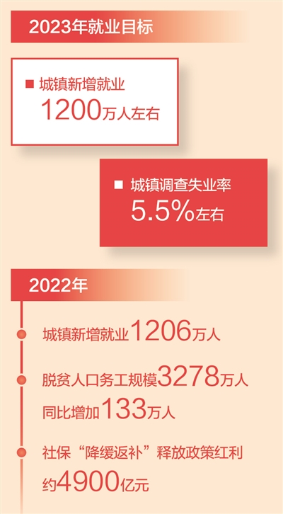 政府工作報(bào)告提出今年發(fā)展主要預(yù)期目標(biāo)中,城鎮(zhèn)新增就業(yè)1200萬人左右,城鎮(zhèn)調(diào)查失業(yè)率5.5%左右。