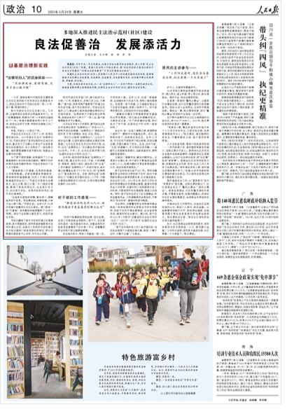 編者按:今年中央一號文件提出,加強鄉(xiāng)村法治教育和法律服務(wù),深入開展“民主法治示范村(社區(qū))”創(chuàng)建。最高人民法院工作報告提出,要“積極促進城鄉(xiāng)基層治理和平安法治鄉(xiāng)村建設(shè)”“加強法治宣傳教育”“引導(dǎo)全民增強法治觀念”。