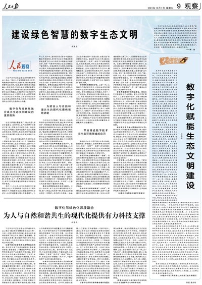 人民日?qǐng)?bào)整版探討:數(shù)字化、智能化為生態(tài)文明建設(shè)提供新路徑