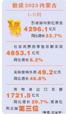 招商引資質(zhì)效顯著提升。積極開展“走出去”招商和“請進(jìn)來”招商,舉辦京津冀、長三角、粵港澳大灣區(qū)招商引資推介活動;創(chuàng)辦國家向北開放經(jīng)貿(mào)洽談會,參與組織世界新能源新材料大會、世界蒙商大會等重要活動。創(chuàng)建外埠企業(yè)之家,聘請內(nèi)蒙古北京商會、上海內(nèi)蒙古商會等33家商會為自治區(qū)“招商大使”。聚焦重點(diǎn)產(chǎn)業(yè)鏈開展精準(zhǔn)招商,2023年1-11月,全區(qū)引進(jìn)國內(nèi)到位資金4296.1億元,同比增長33.7%,超額完成全年目標(biāo)。