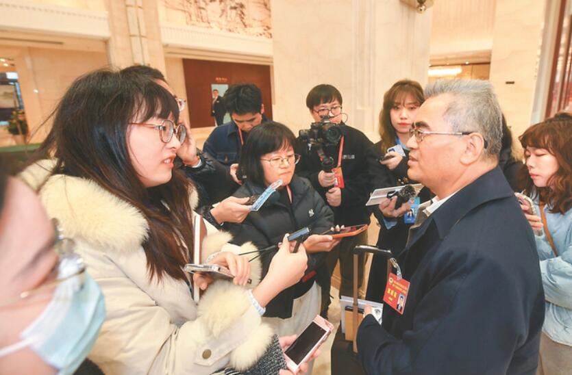 委員在住地華山飯店接受記者采訪(fǎng)。 本報(bào)記者 王詩(shī)宇 趙亞玲 邵丹 攝