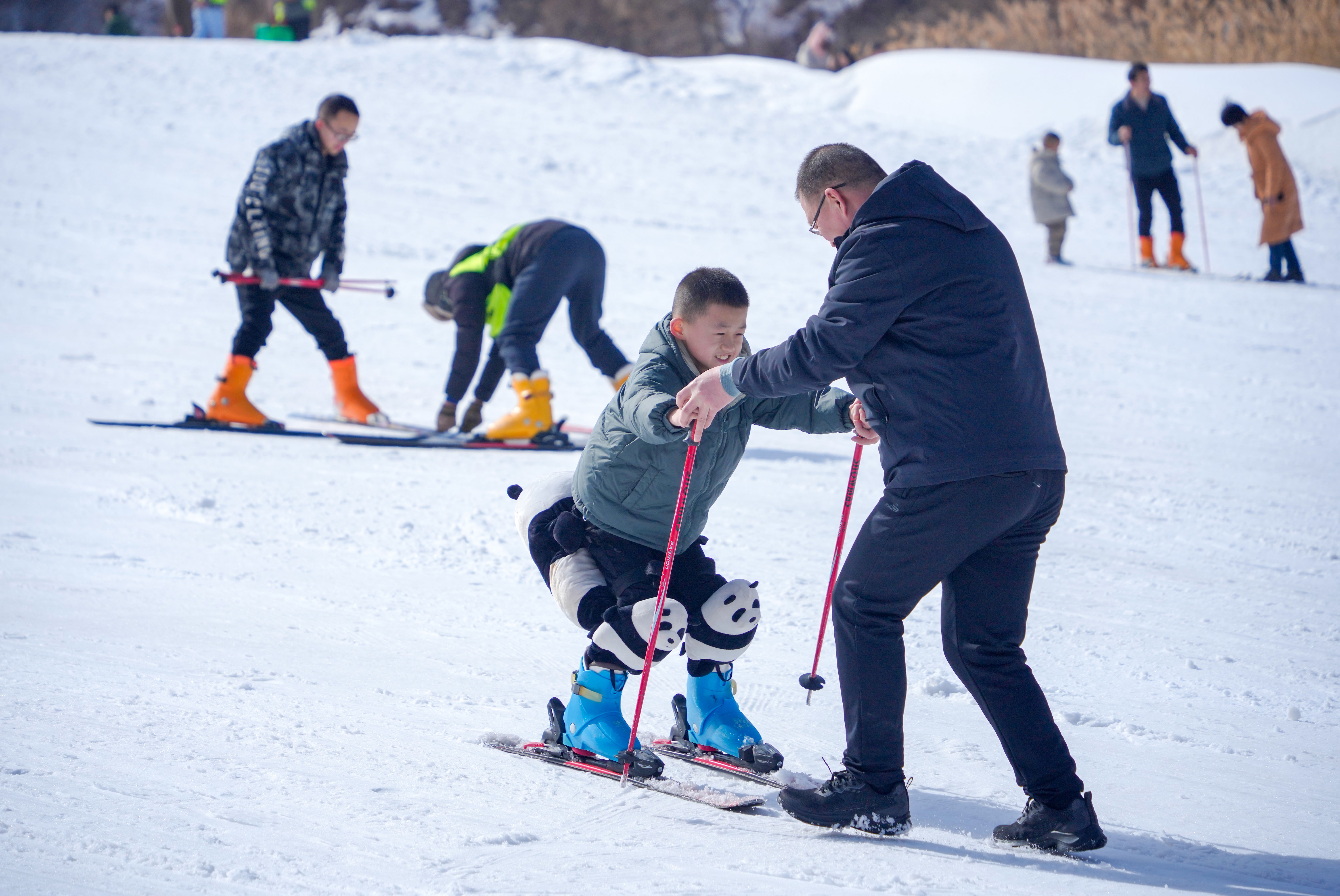 春節(jié)的‘紅’和冰雪的‘白’相遇,這是屬于中國人的獨特浪漫。2月10日(農(nóng)歷大年初一),在山西運城,萬榮孤峰山滑雪場里熱鬧非凡。父母們陪伴孩子走進(jìn)滑雪場,體驗滑雪、雪圈等項目。