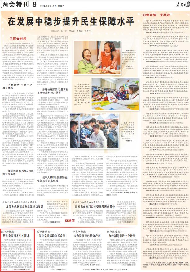 人民日?qǐng)?bào)丨朱小坤代表:幫扶企業(yè)招才引才用才