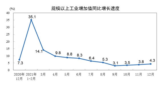 國(guó)家統(tǒng)計(jì)局:2021年12月份規(guī)模以上工業(yè)增加值增長(zhǎng)4.3%