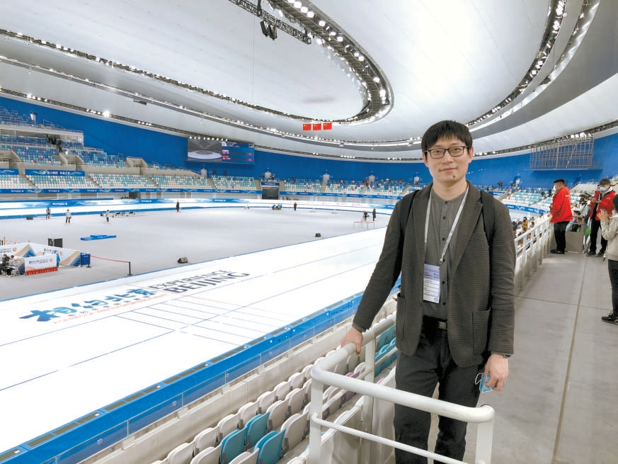 2021年4月“相約北京”冬奧測(cè)試賽期間,沈興華到國家速滑館學(xué)習(xí)觀摩冬奧會(huì)籌備工作。
