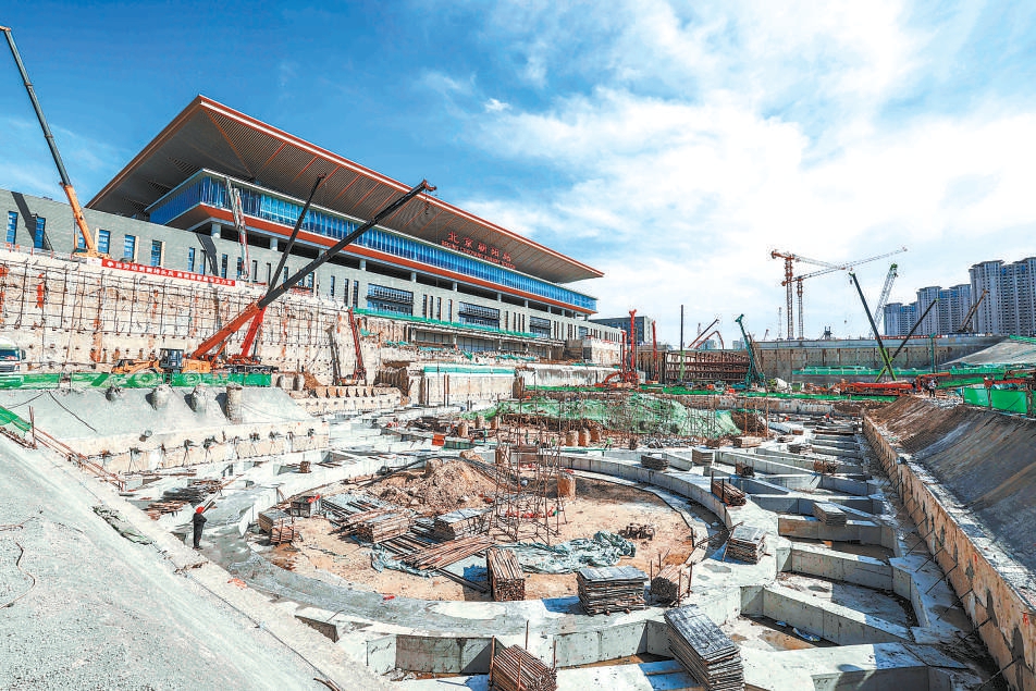 北京朝陽(yáng)站(原星火站)是《北京城市總體規(guī)劃(2016年-2035年)》確定的本市鐵路對(duì)外客運(yùn)樞紐之一。北京朝陽(yáng)站交通樞紐工程總建筑面積13.3萬平方米,包括北側(cè)公交立體停車樓和南側(cè)樞紐換乘大廳。同時(shí),地鐵星火站作為地鐵3號(hào)線、R4線的換乘站,位于交通樞紐地下,基坑最深處位于地下40米,相當(dāng)于13層住宅樓的高度。