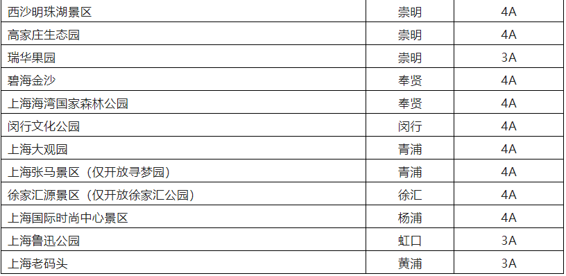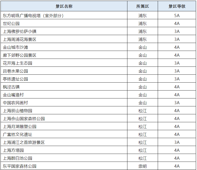 恢復(fù)開(kāi)放的32家A級(jí)旅游景區(qū)(圖片來(lái)自上海市文旅局,央廣網(wǎng)發(fā))
