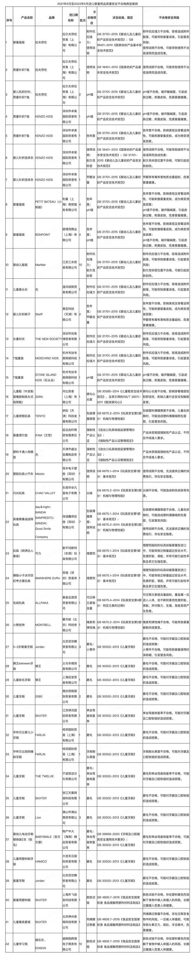 央廣網(wǎng)北京6月1日消息 據(jù)海關(guān)總署網(wǎng)站消息,6月1日,海關(guān)總署通報(bào)2021年6月至2022年5月間檢出的部分進(jìn)口嬰童用品質(zhì)量安全不合格典型案例,包括服裝、童鞋、玩具、牙刷、食品接觸產(chǎn)品等5類82批次進(jìn)口嬰童用品,涉及拉夫勞倫、KENZO KIDS、ZARA和獅王等多個(gè)品牌產(chǎn)品。