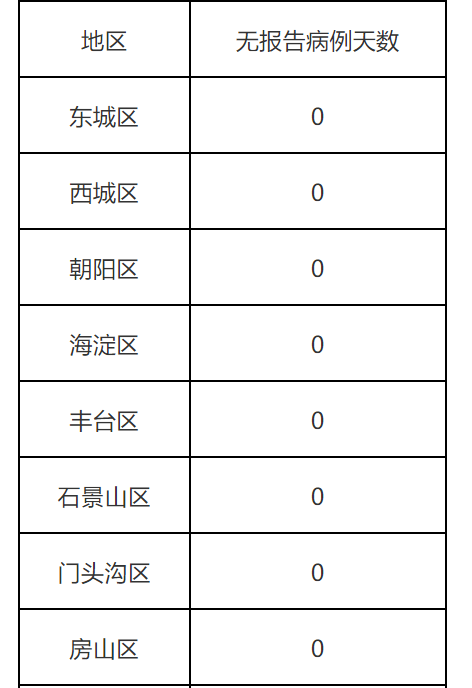全市16區(qū)和經(jīng)濟(jì)技術(shù)開發(fā)區(qū)無報告病例天數(shù)情況