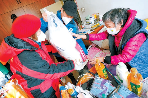 昨天,在龍?zhí)督值佬腋I鐓^(qū)養(yǎng)老服務(wù)驛站,“夕陽(yáng)手拉手互助團(tuán)”和“小棉襖愛老”的志愿者們,將愛心物資送到社區(qū)養(yǎng)老家庭照護(hù)床位的老人手中。疫情下,老年群體更加需要關(guān)注與關(guān)愛,志愿者們以需求為導(dǎo)向,精準(zhǔn)服務(wù)老年人。 本報(bào)記者 方非攝