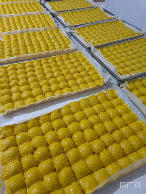央廣網(wǎng)興安12月29日消息(記者王秋蕾 通訊員譚艷麗)“咱家的大黃米黏豆包,用的都是當(dāng)?shù)貎?yōu)質(zhì)的黃米,純手工制作,傳統(tǒng)口味,不含任何添加劑、色素,吃起來(lái)嘎嘎香,喜歡的老鐵們可以放心下單?!敝辈ラg內(nèi),張兆儀一邊用手機(jī)拍攝著工人現(xiàn)場(chǎng)制作粘黏豆包的鏡頭,一邊向直播間的網(wǎng)友們介紹著。