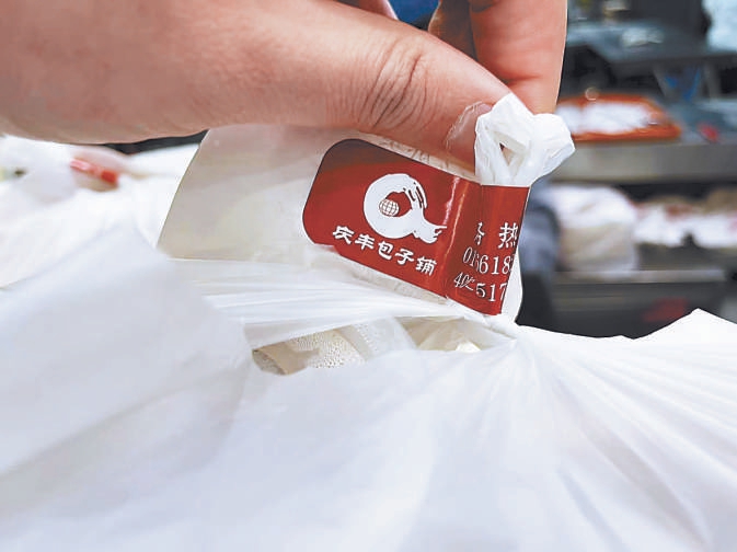 傍晚6時左右,廣渠門內(nèi)地鐵口附近的慶豐包子鋪訂單漸漸多了起來。記者現(xiàn)場看到,服務(wù)員把蒸好的包子和其它菜品裝進外賣盒后,馬上用專屬的外賣袋和封簽將食品“封死”。一眼望去,桌上七八份外賣都貼著帶有“慶豐包子鋪”標志的專屬紅色封簽。