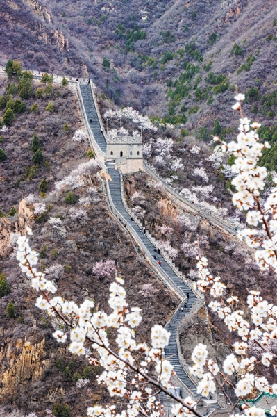 3月24日,居庸關長城與山花爛漫同框。新京報記者 王子誠 攝