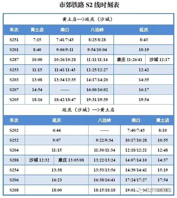 記者從北京市郊鐵路官微獲悉,為滿足“端午”假日期間市民出行需求,6月21日至6月22日期間,S2線每日開行7對列車。列車開行時(shí)刻如下圖所示: