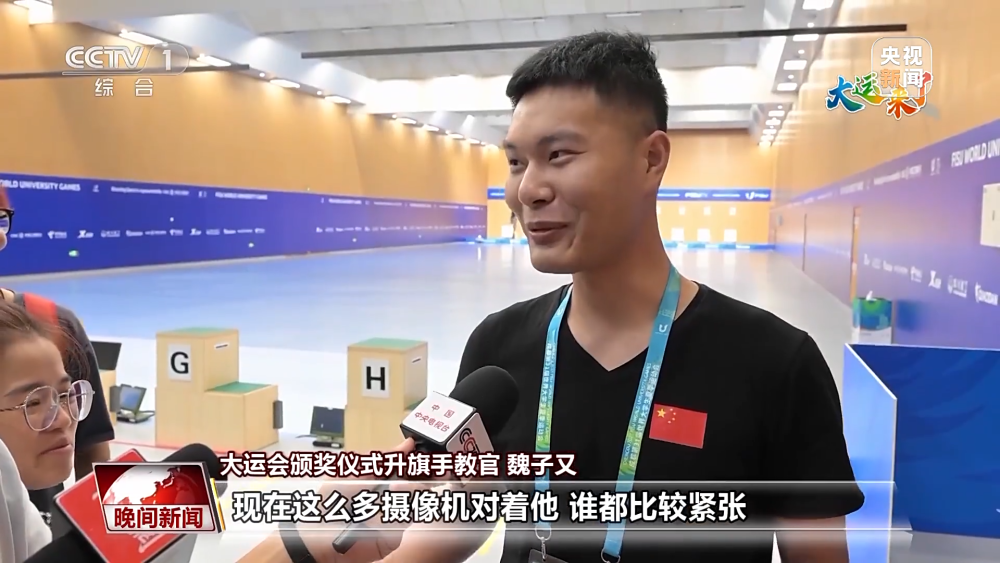 大運(yùn)會頒獎儀式升旗手教官 魏子又:她們也都還是十幾歲的孩子,這么多攝像機(jī)對著她們,都比較緊張,還是需要經(jīng)常面對鏡頭來成長自己。