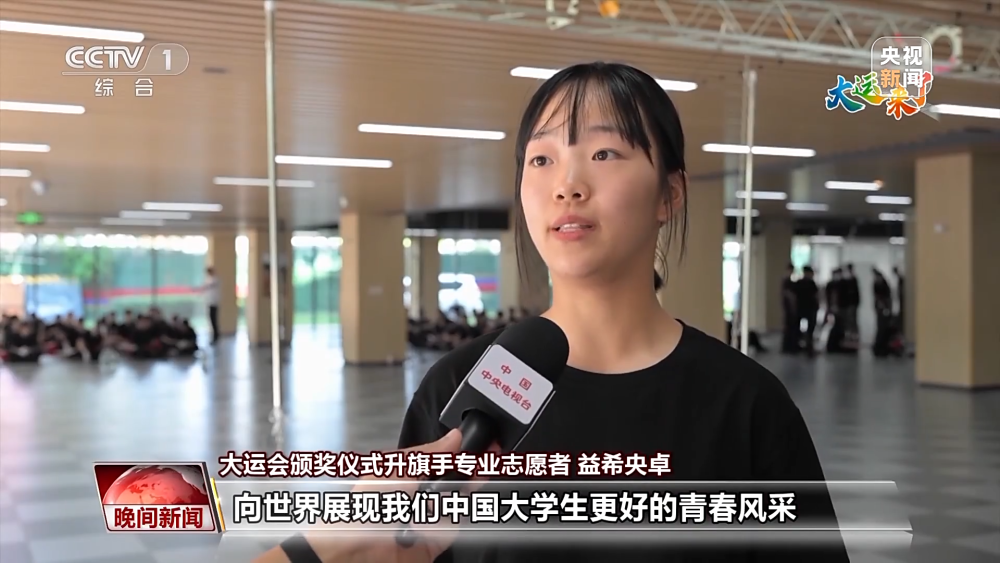 大運(yùn)會頒獎儀式升旗手專業(yè)志愿者 益希央卓:要心里有信念才能把這件事做好。向世界展現(xiàn)我們中國大學(xué)生更好的青春風(fēng)采。
