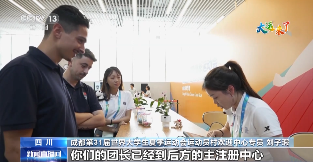 成都第31屆世界大學(xué)生夏季運(yùn)動(dòng)會(huì)運(yùn)動(dòng)員村歡迎中心專員 劉子瑕:你們的團(tuán)長(zhǎng)已經(jīng)到后方的主注冊(cè)中心為你們辦理身份注冊(cè)卡,之后你們便會(huì)拿到身份注冊(cè)卡就可以在大運(yùn)村內(nèi)通行。