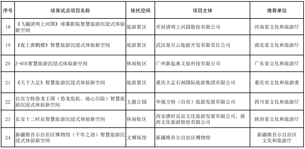 全國首批24個(gè)智慧旅游沉浸式體驗(yàn)新空間培育試點(diǎn)公示