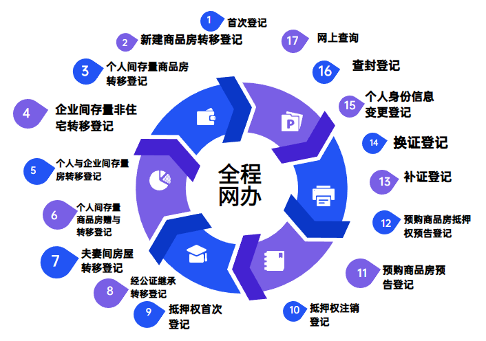?。?7項常見登記業(yè)務(wù)的“全程網(wǎng)辦”示意圖,圖源:北京市規(guī)劃和自然資源委員會微信公眾號,央廣網(wǎng)發(fā))