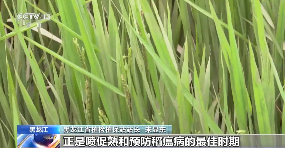 黑龍江省植檢植保站站長 宋顯東:像這塊地迫切需要促熟了,正是噴促熟和預防稻瘟病的最佳時期。上面這幾個功能葉還相當不錯,因為水稻產量形成最重要的還是上面那三四個葉。
