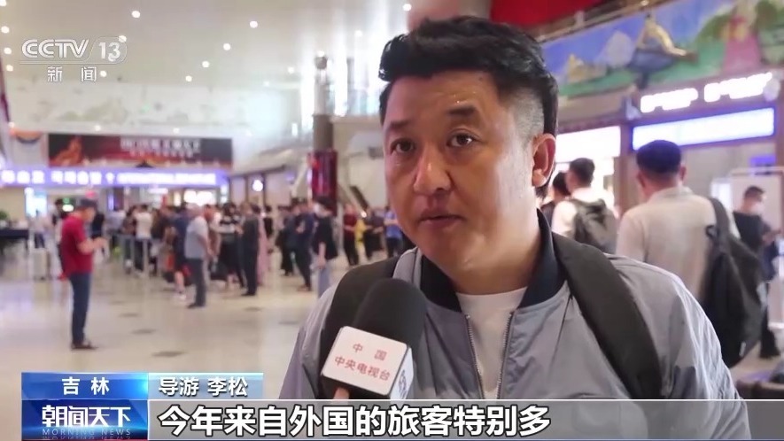 導(dǎo)游 李松:今年來自外國的旅客特別多,這個團(tuán)是這個月我?guī)У牡谖鍌€團(tuán)了。