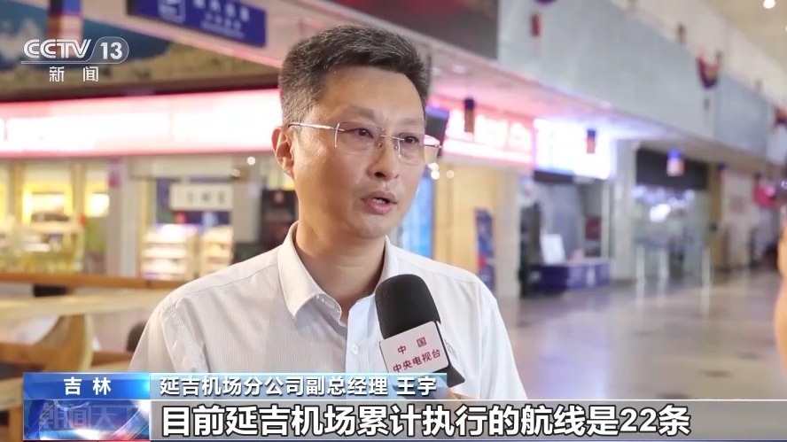 延吉機(jī)場分公司副總經(jīng)理 王宇:目前延吉機(jī)場累計執(zhí)行的航線是22條,國內(nèi)航線18條,國際航線4條。每周能達(dá)到對韓國的航線84班,對韓國的航班量位居?xùn)|北的第一位。