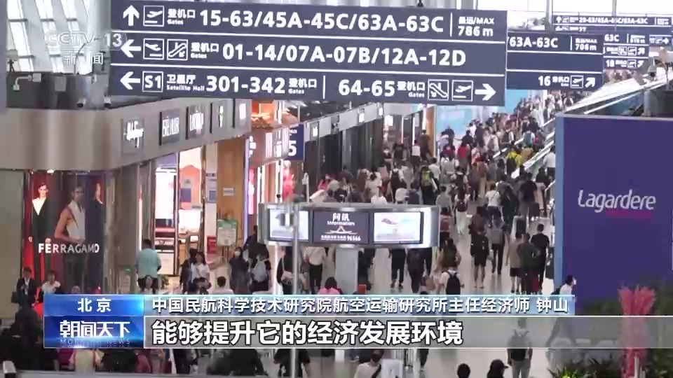 中國民航科學(xué)技術(shù)研究院航空運輸研究所主任經(jīng)濟(jì)師 鐘山:通過我們這種“干支通、全網(wǎng)聯(lián)”以及通程航班的模式,能夠讓我們?nèi)?、四線城市的旅客,融到整個國家的經(jīng)濟(jì)社會建設(shè)中,能夠提升它的經(jīng)濟(jì)發(fā)展環(huán)境。特別是從統(tǒng)一大市場的開放角度來看,這個是最終能夠促進(jìn)我們國內(nèi)市場的銜接。