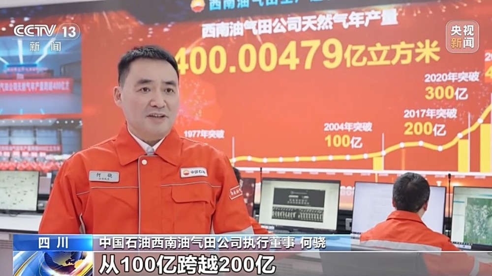 中國石油西南油氣田公司執(zhí)行董事 何驍:從100億跨越200億,我們用了13年的時間,從200億到建成300億戰(zhàn)略大氣區(qū)僅用3年,今年上產(chǎn)400億,占同期全國天然氣產(chǎn)量的1/5,離實現(xiàn)2025年上產(chǎn)500億方的目標又近了一步。